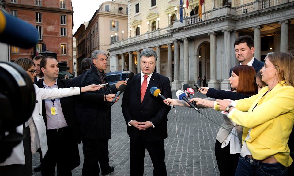 Комментируя ситуацию безопасности на футбольных аренах Украины, Порошенко отметил, что по его информации “корни этих провокаций идут не из Украины“.