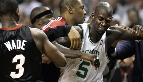 За 40 секунд до конца первого матча первого раунда Плэй-офф между Майами Хит и Бостон Селтикс команды сошлись в рукопашной. Спровоцировало ее падение Пола Пирса возле скамейки Хит. В ходе потасовки технические замечания получили Глен Дэвис, Адонис Хаслем,.