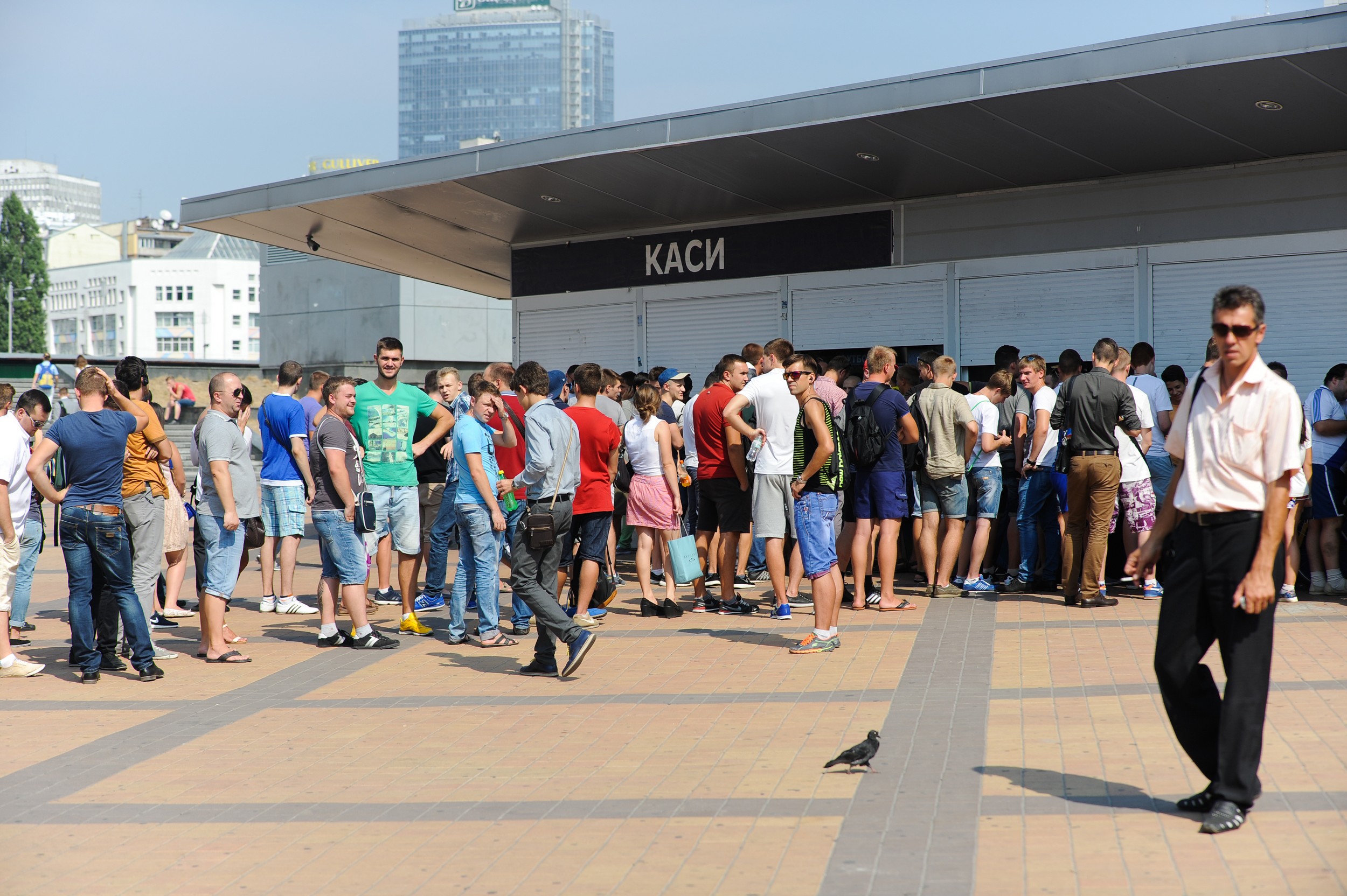 Не удивительно, что к времени начала продажи билетов, у касс НСК Олимпийский выстроились очереди желающих купить билеты. И это несмотря на жару и рабочее время.