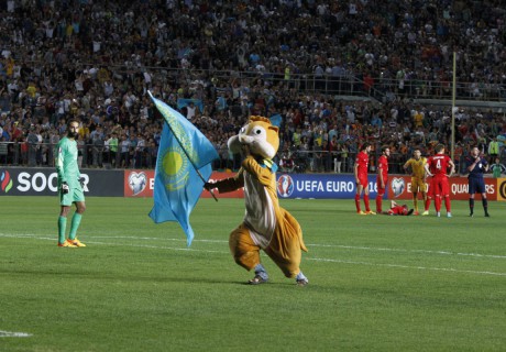 Курьезный инцидент произошел в концовке матча сборных Казахстана и Турции. На поле, пытаясь "завести" трибуны и футболистов сборной Казахстана, выбежал аниматор в костюме бурундука.